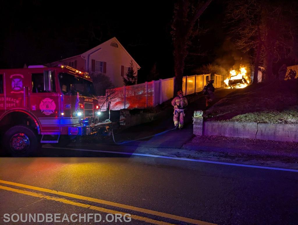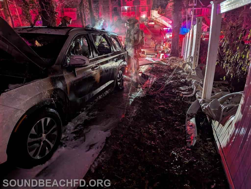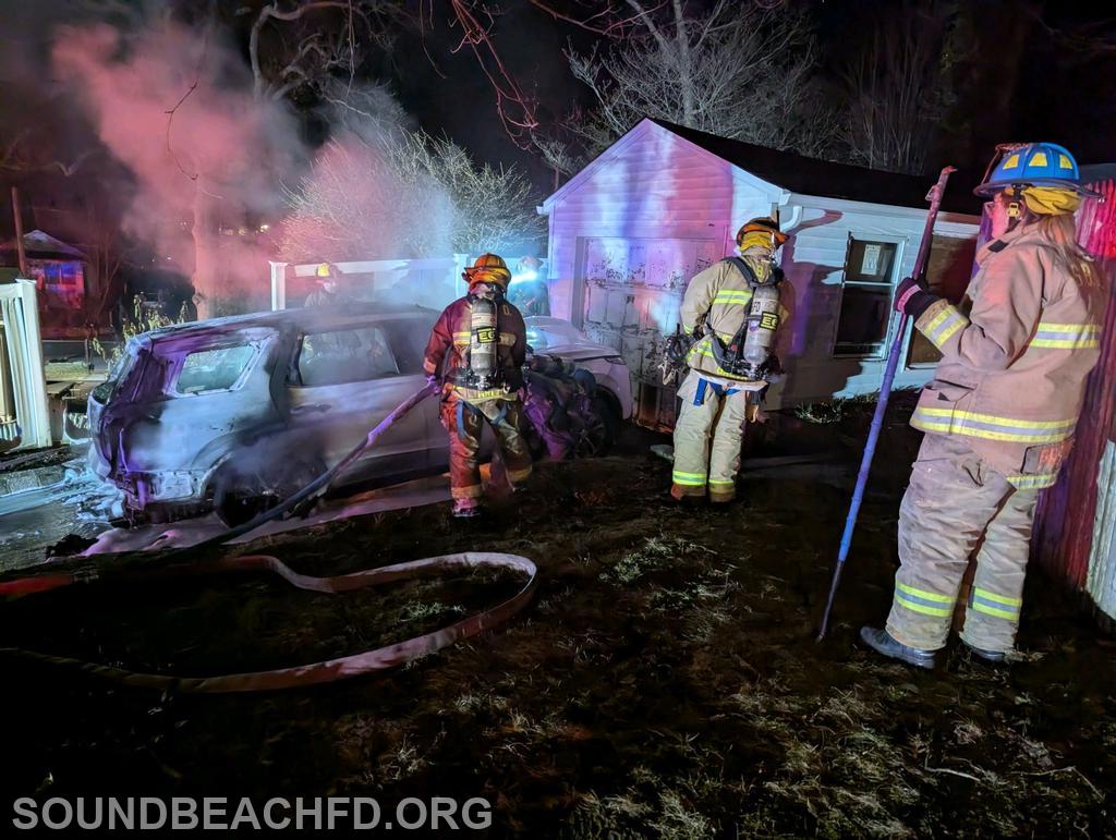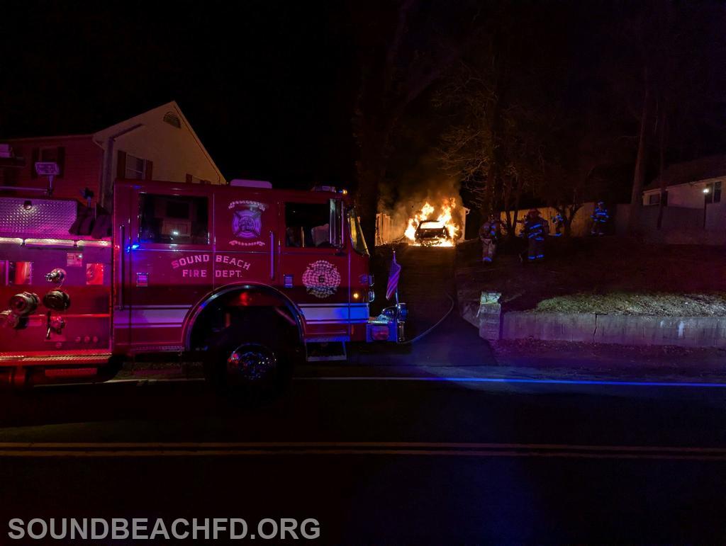 | On Sunday, March 15th at approximately 12:30 AM, the Sound Beach Fire Department was activated for a reported vehicle fire in a driveway on Echo Avenue.