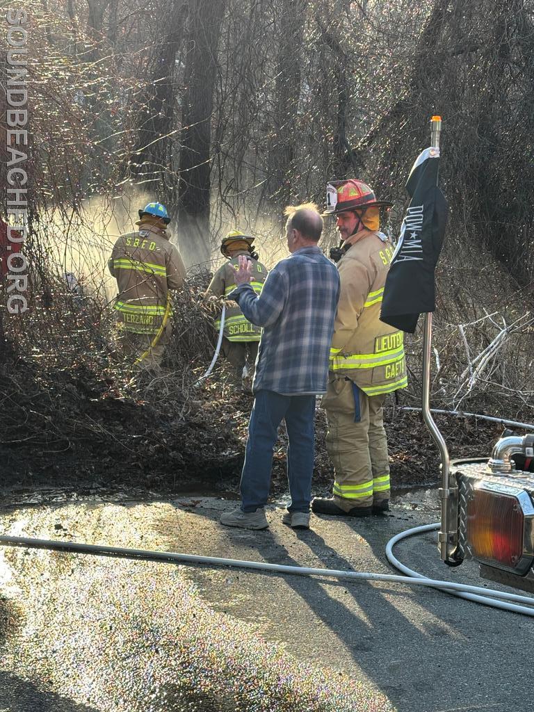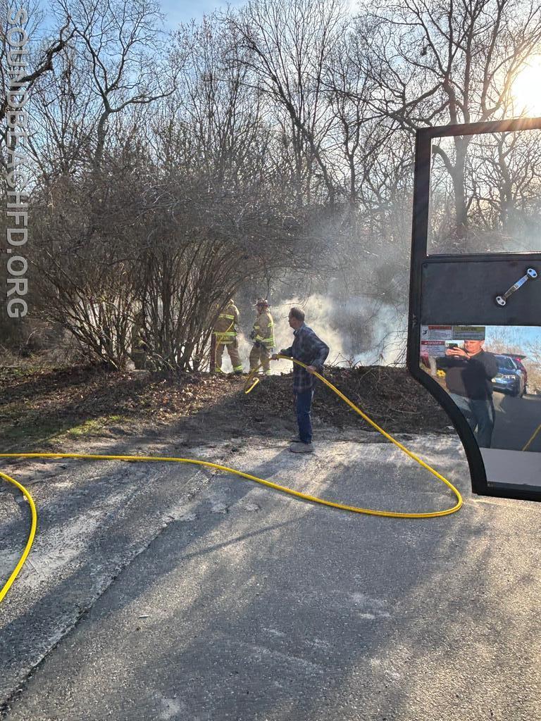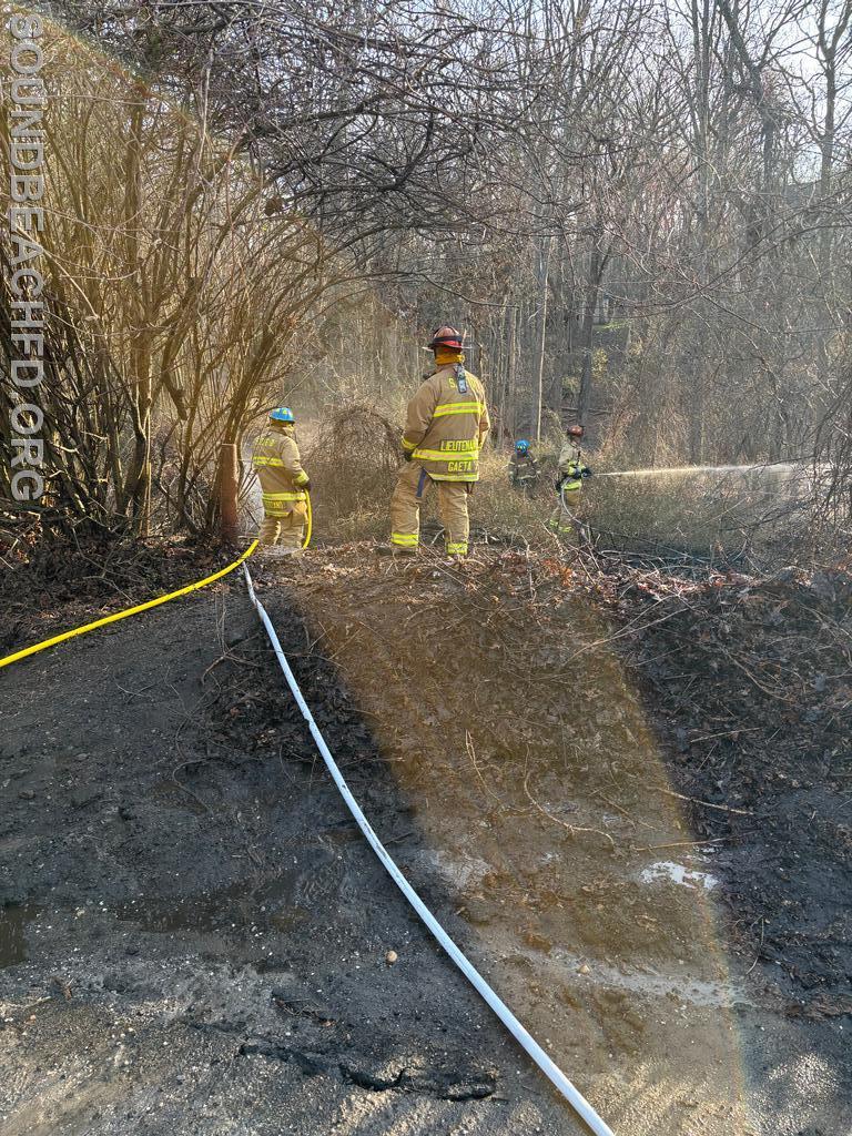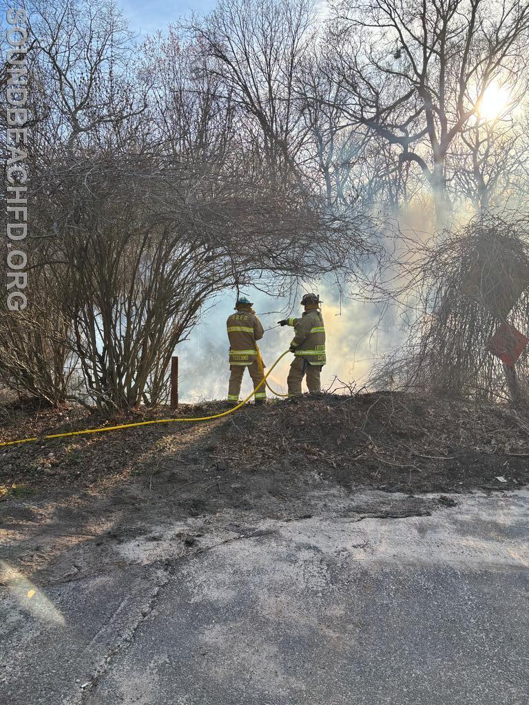 | Earlier today at approximately 5:50 PM, members responded to a reported brush fire at the end of Port Jefferson Road.