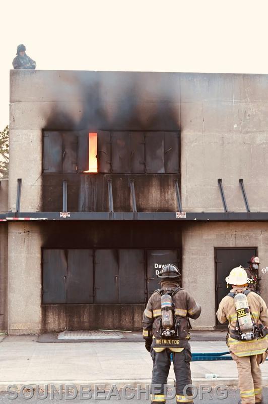 Firefighters operated in the “Taxpayer” building—a realistic training structure designed to simulate storefronts on the first floor with apartments above. Crews worked through hands-on scenarios including fire extinguishment, forcible entry, ventilation, and search and rescue.