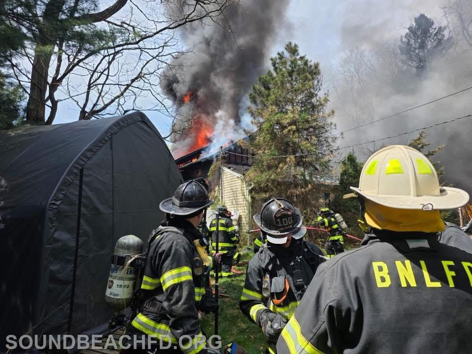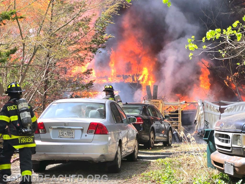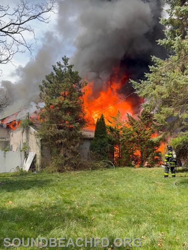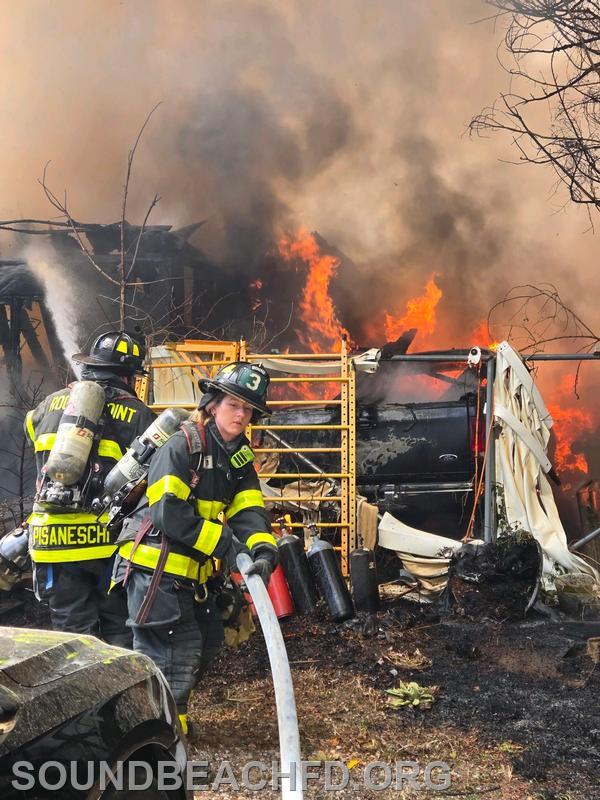 Sound Beach members quickly went to work, stretching a handline alongside crews already operating on scene and assisting in bringing the fire under control. Multiple neighboring departments also responded, working together in a coordinated effort to contain and extinguish the blaze.